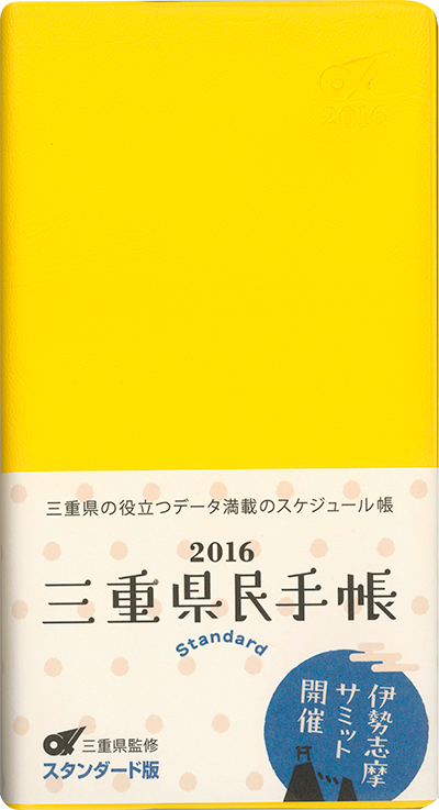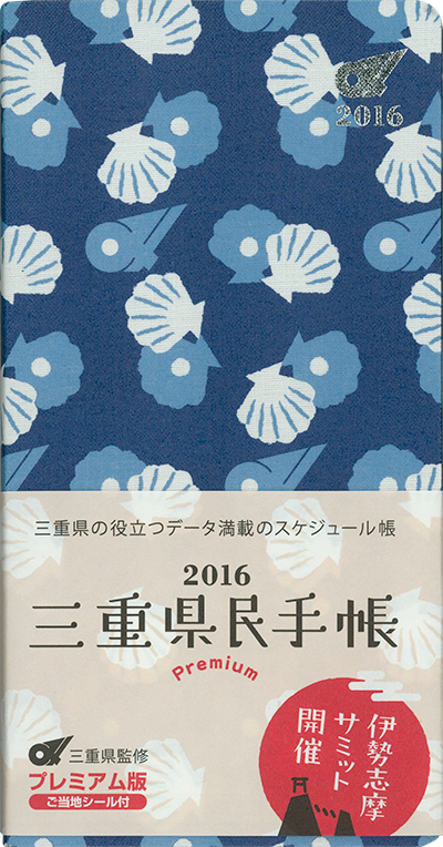 2015年版の三重県民手帳は10年ぶりの復活という事もあり、あっという間に完売して望外の喜びとなりました。手帳を購入したい人が津から伊勢にまで電話をかけてきて、組合加盟会社に在庫を確認するほどに盛り上がりました。いやが上にも2016年版に期待が高まる中、この年はG7のサミットが三重県の伊勢志摩地方で開催される年であることから、プレミアム仕様のカバーを1000冊限定で制作し、伊勢志摩サミット開催記念としてスタンダードカバー3色と共に発売しました。