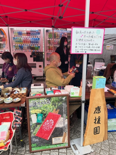 今回もそのイベント中で三重県民手帳の販売ブースを持ち、多数の来場者に三重県民手帳のアピールが出来ました。来場者の中には「毎年購入しています。今年も購入しました」と言って下さる方もいらっしゃいました。今回は地元高校の三重県民手帳サイズの木製手帳カバーなどもお隣のブースで販売しており、地元高校生の方々と交流を持つことが出来、三重県民手帳の今後についても改めて良いものを作っていきたいと思いました。